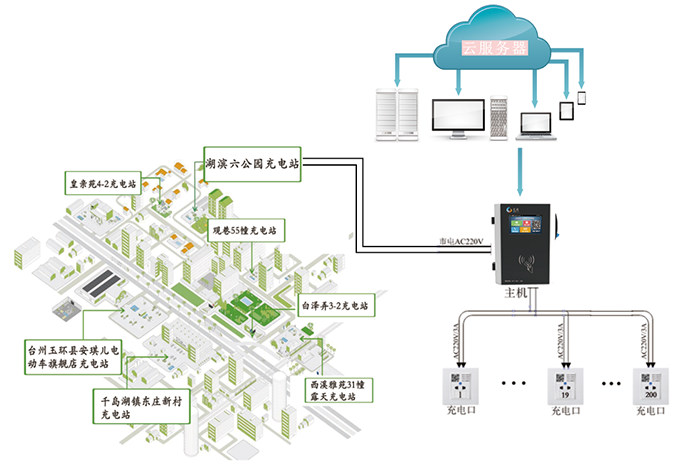 云智能充電系統以電瓶車安全充電為基礎,基于GPRS、Ethernet構建互聯網+物聯網+人聯網的模式, 通過自主研發智能充電樁、主機、通訊設備、服務端和客戶端應用系統,為降低電瓶車充電火災隱患,實現安全充電的終極目標提供技術手段及相關服務。